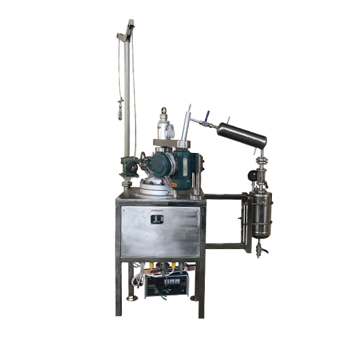 The vacuum distillation reactor is a device that quickly concentrates or separates the liquid medium. The reaction medium is heated to the boiling point in the reactor, and the stirring system is continuously rotated to increase the evaporation surface area and accelerate the evaporation speed. Appropriate vacuum conditions can achieve The boiling point of the medium is quickly separated, condensed by the condenser and collected.