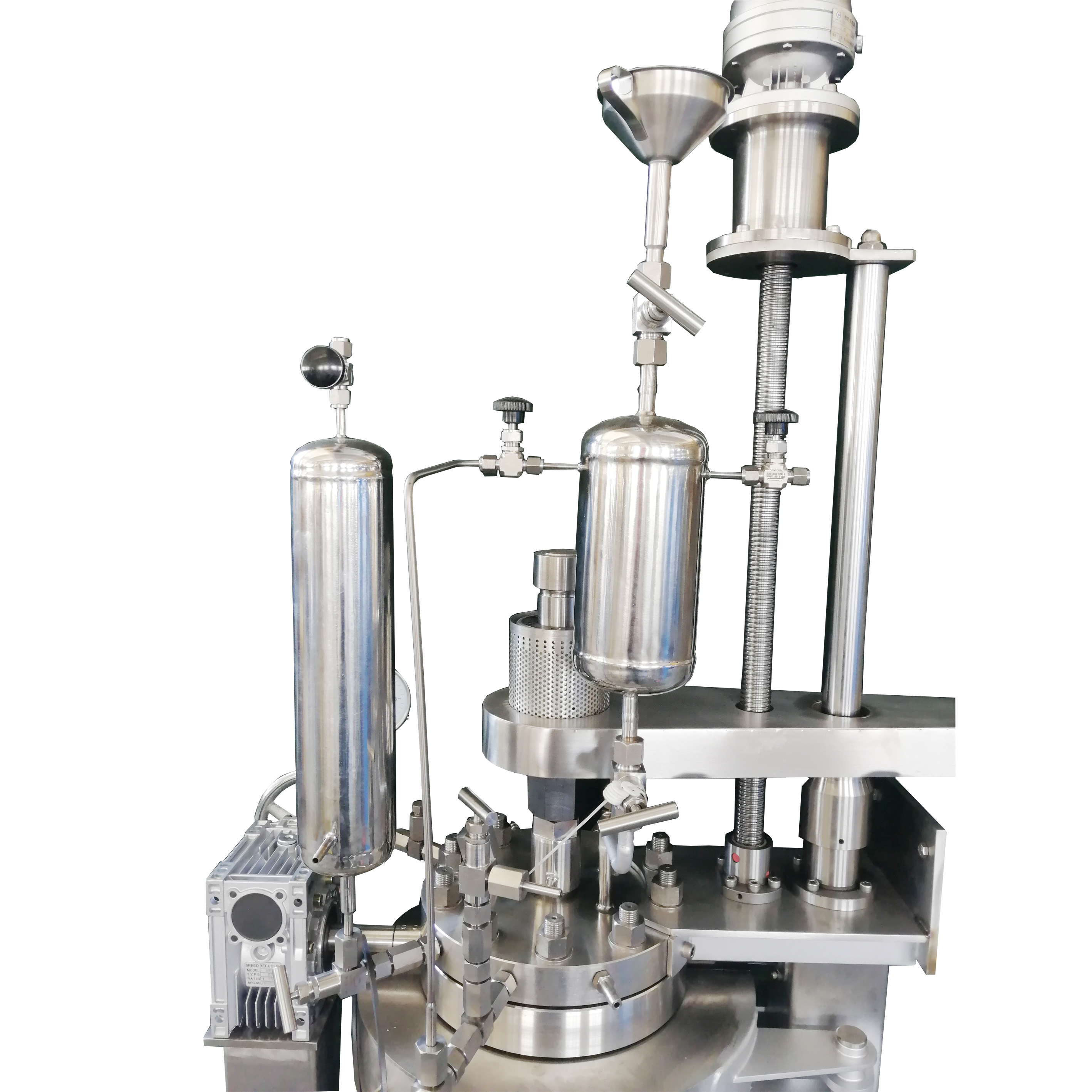 反應(yīng)釜配豎直回流冷凝器(蛇形管冷凝器),等壓加料罐,適合多種實(shí)驗(yàn)室用途。